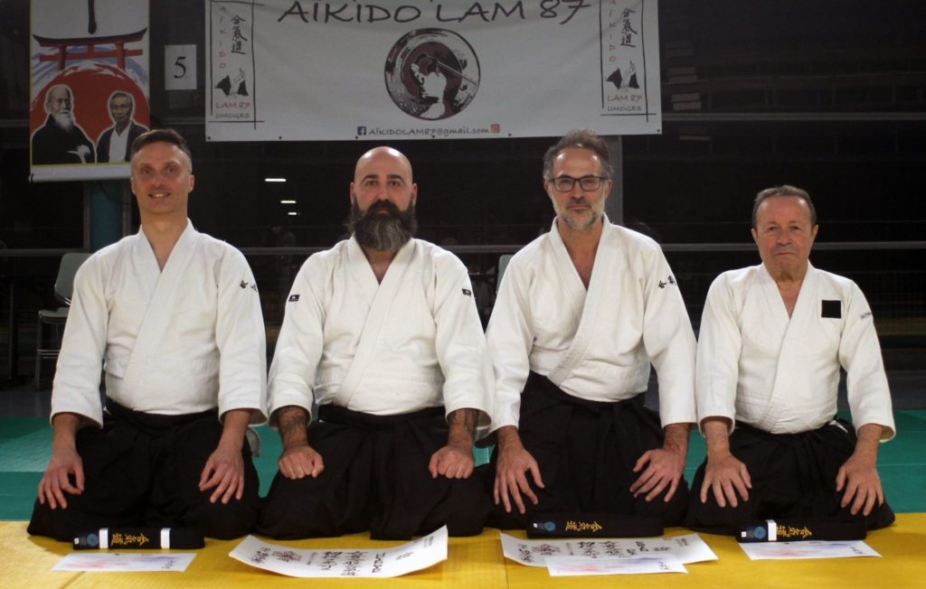 Ce lundi restera une journée marquante dans la mémoire de l’AIKIDO LAM 87. À cette occasion, nos deux enseignants ainsi que le président du club, ont remis officiellement leurs diplômes à plusieurs membres du club : le 1er dan à Cyril, Jean-Pierre, et Fabien qui reçoit également son 1er dan aikikai obtenu lors d’un stage à Chambéry au mois de juin, où Julien, l’un de nos deux enseignants a obtenu son 3ème dan aikikai.